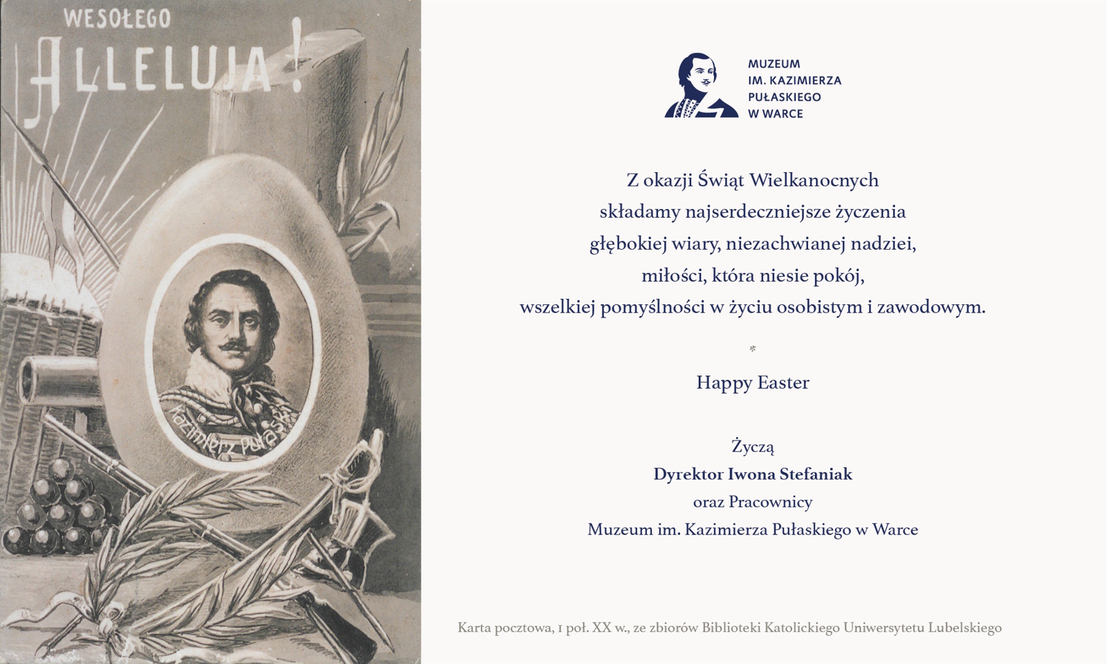 Informujemy, że w okresie Świąt Wielkanocnych Muzeum im. Kazimierza Pułaskiego w Warce będzie czynne według następującego harmonogramu: