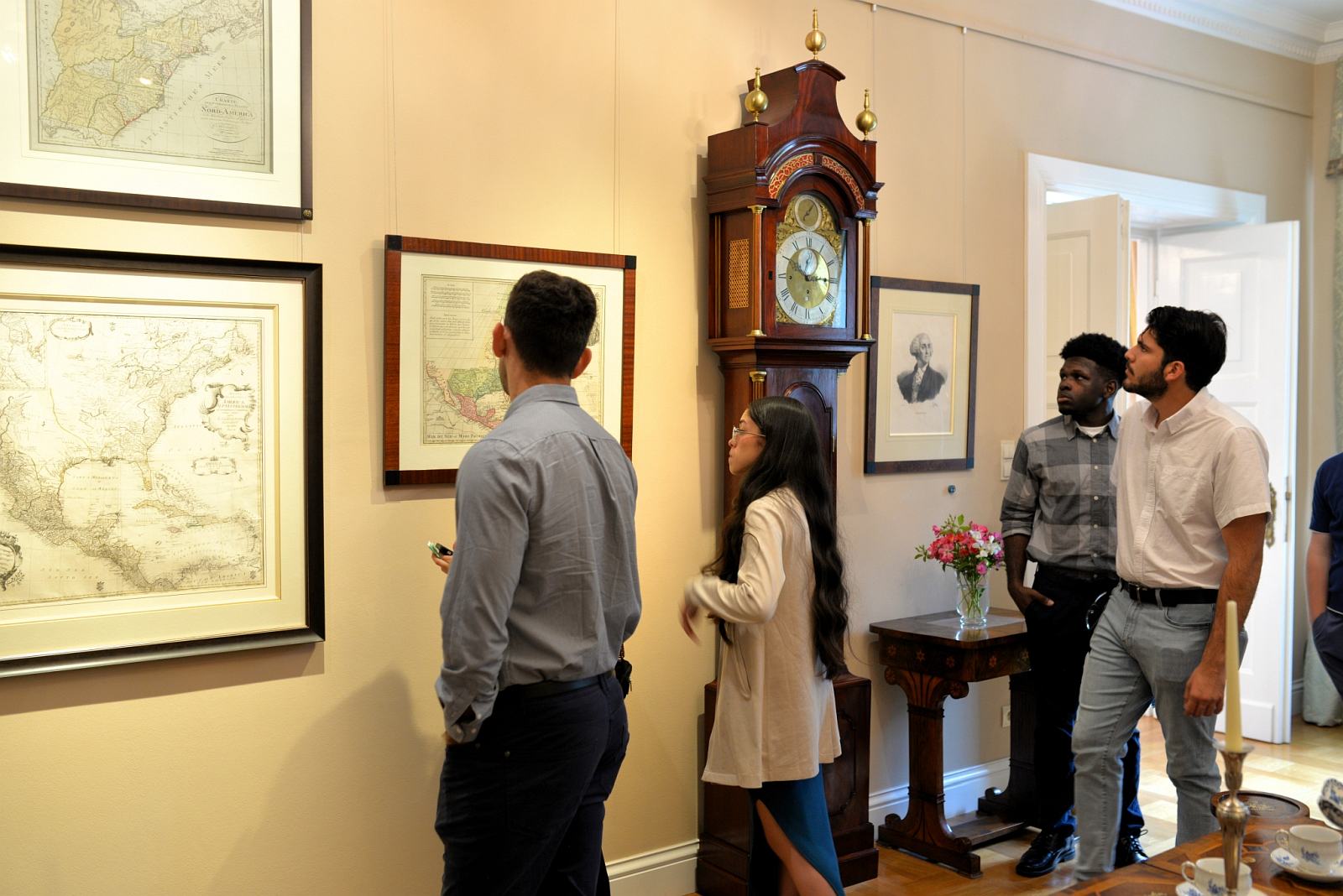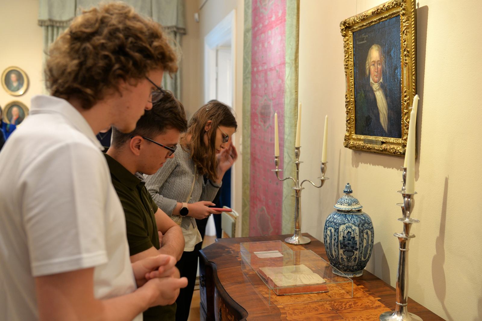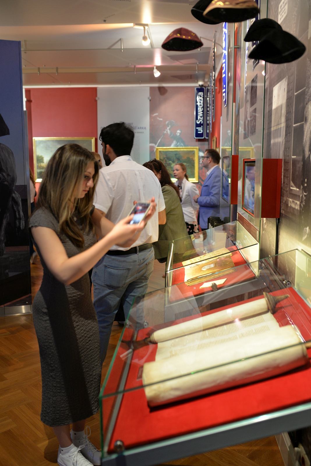 Wizyta w Muzeum rozpoczęła się zwiedzaniem ekspozycji. Rozmawialiśmy o Pułaskim, Kościuszce i innych Polakach, którzy zapisali się w historii Stanów Zjednoczonych Ameryki. Nasz patron był im dobrze znany. Za oceanem widzieli jego pomniki, a wśród gości była także osoba, która uczęszczała do polskiej szkoły jego imienia. Ktoś inny mieszkał w pobliżu West Point i bardzo dobrze kojarzył pomnik Kościuszki na tym terenie. Podczas zwiedzania furorę zrobił pierwodruk Konstytucji 3 maja prezentowany w naszej muzealnej bibliotece.