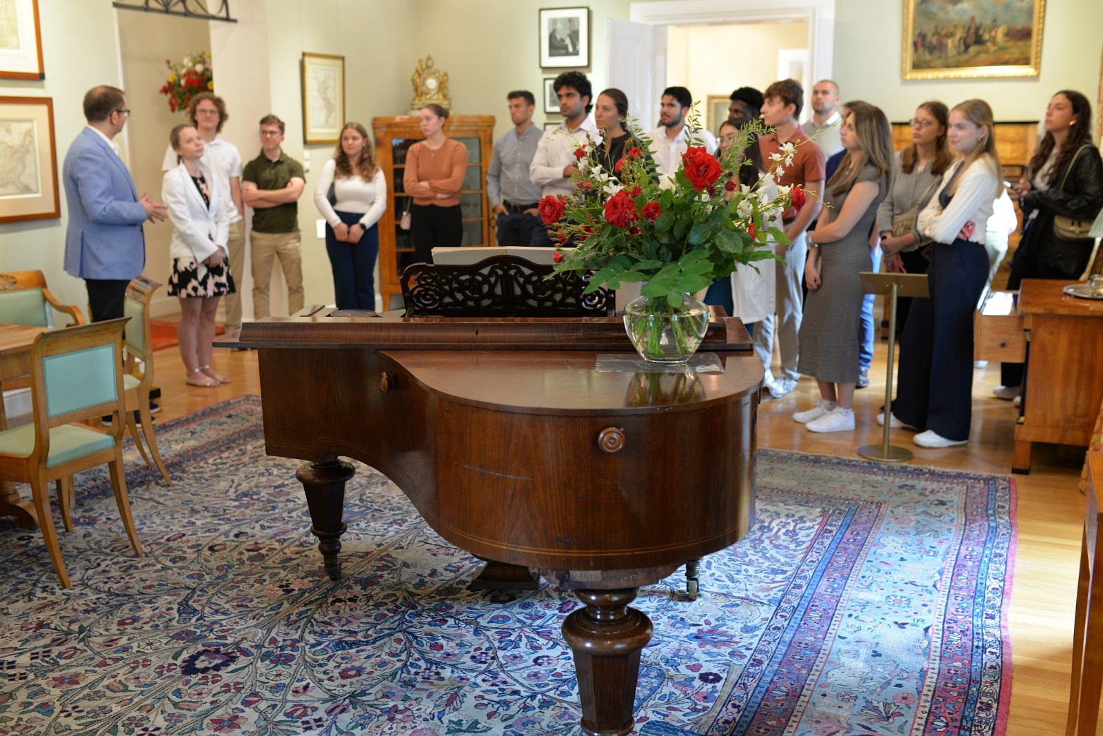 W Centrum Edukacyjno-Muzealnym opowiadaliśmy o powstaniu w Warce pierwszego w Polsce muzeum emigracji i realizowanych przez nie zadaniach, które w znacznej mierze poświęcone są tematyce polsko-amerykańskiej. Była kawa i słodkości w Café Savannah, a potem specjalny koncert uzdolnionego pianisty z Warki Jakuba Tomali, studenta Uniwersytetu Muzycznego Fryderyka Chopina. Rówieśnicy z USA przyjęli z aplauzem jego występ. Muzyka Chopina kojarzona tak dobrze z Polską, pozwoliła poczuć niezwykłe emocje.