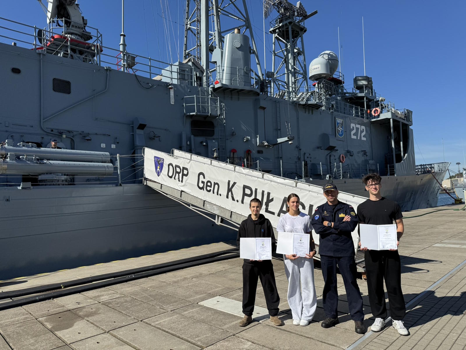 Miałem ogromny zaszczyt reprezentować naszą szkołę jako laureat konkursu historyczno-marynistycznego „Dwa Oblicza Pułaskiego”. To wyjątkowy konkurs, który po trzech wymagających etapach wyłonił trójkę najlepszych uczestników. Znalazłem się w gronie zwycięzców i dzięki temu mogłem przeżyć niesamowitą przygodę – rejs na fregacie ORP Gen. K. Pułaski (nr burtowy 272).