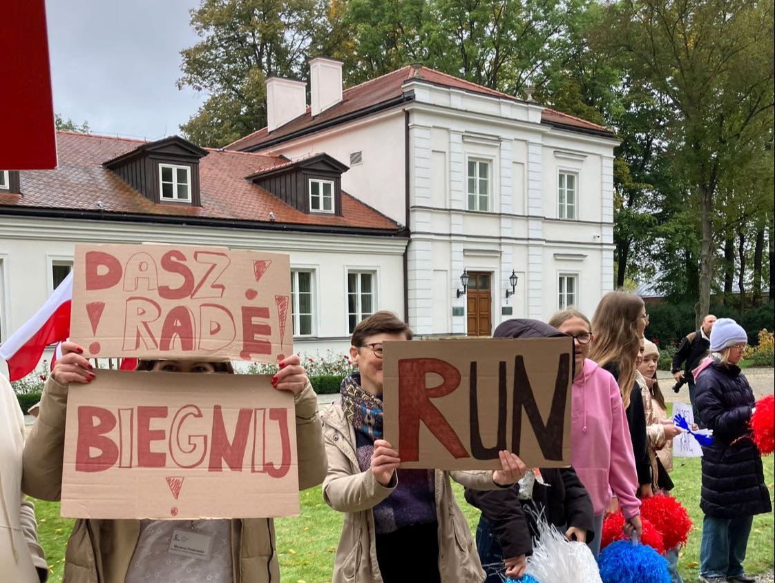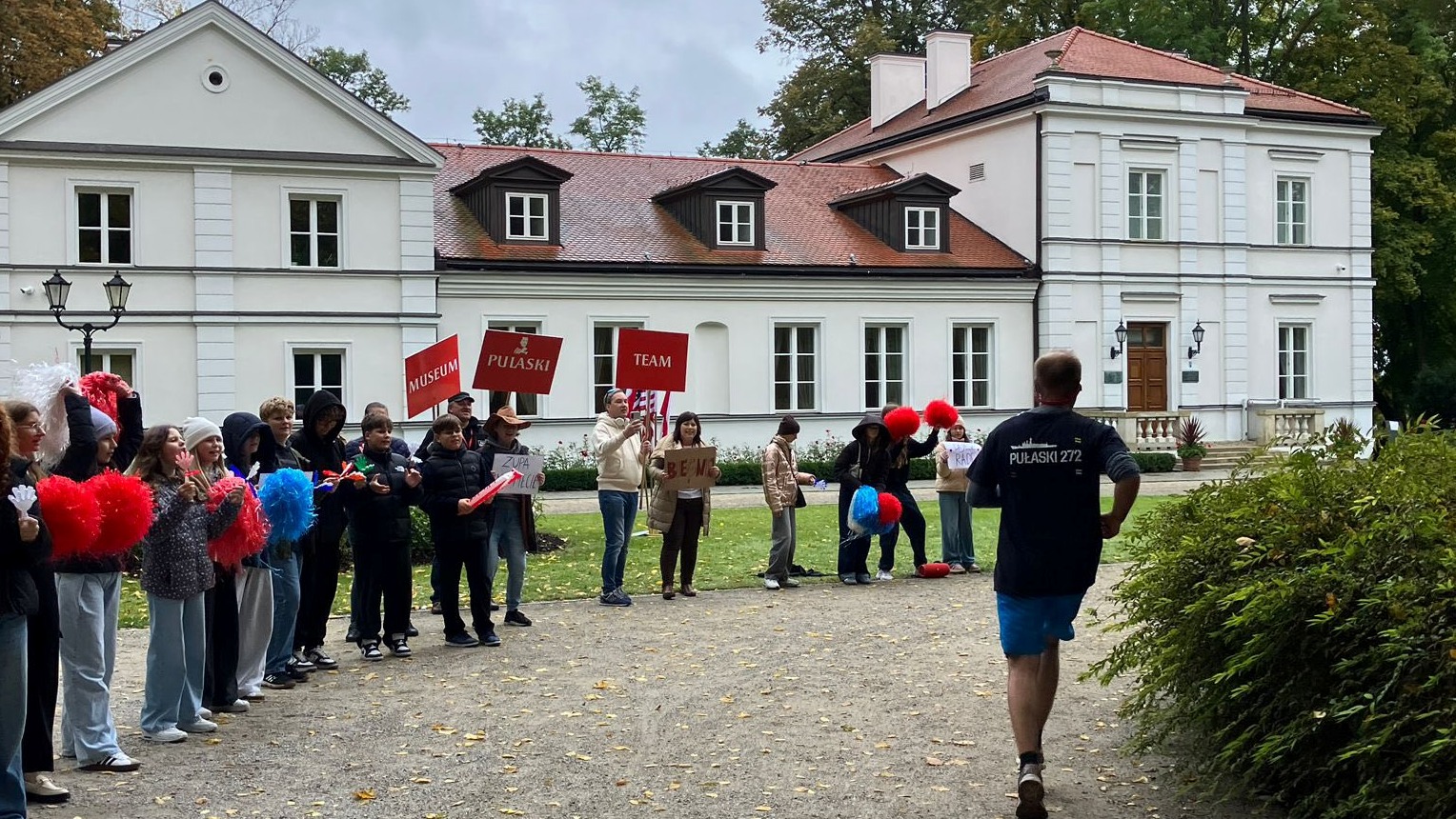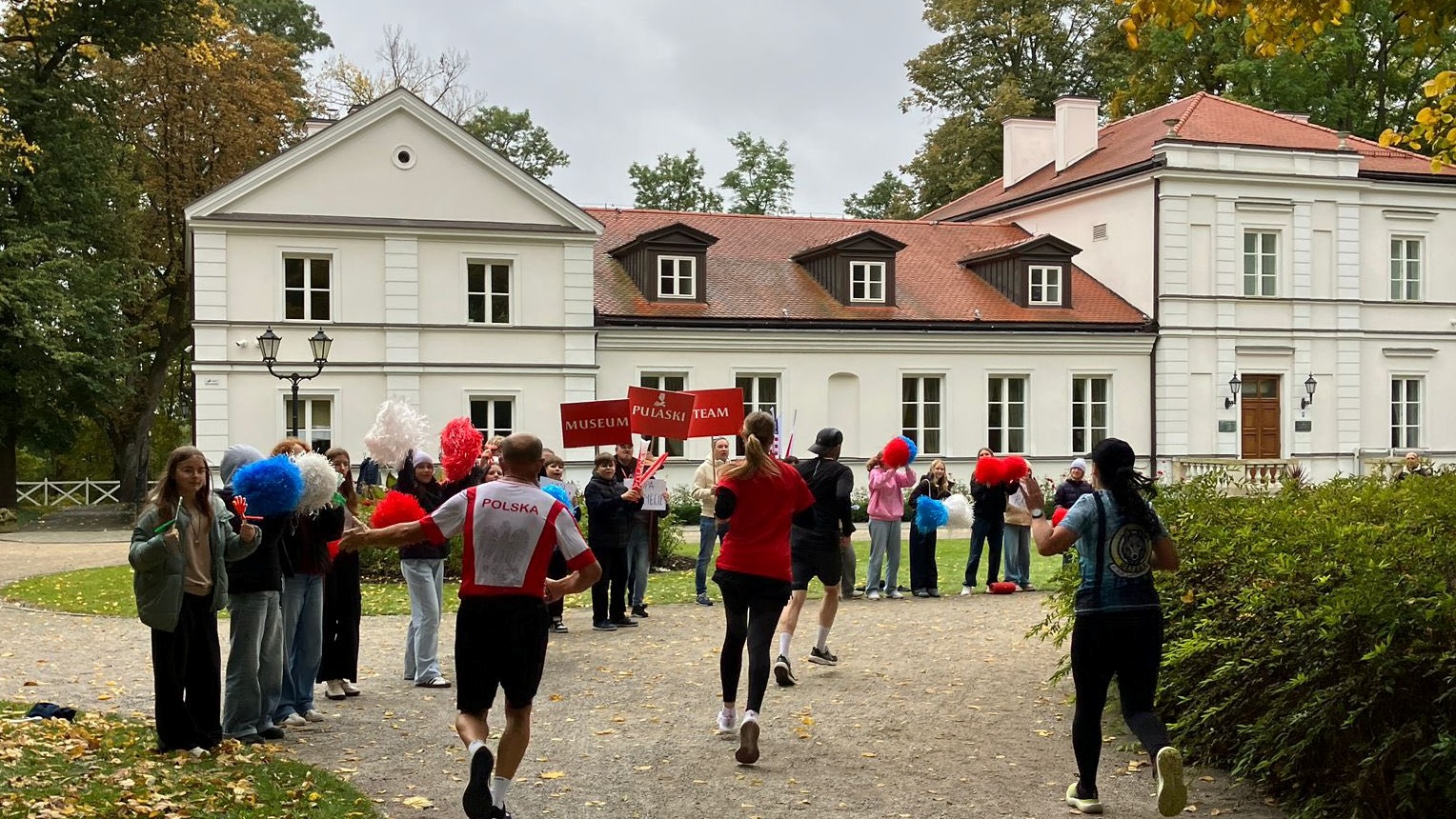 Muzeum przygotowało strefę kibica w parku – pełną radości, uśmiechu i sportowego ducha. Kibice, wśród których byli pracownicy Muzeum oraz wolontariusze z Koła Wolontariatu przy Szkole Podstawowej nr 1 im. Piotra Wysockiego w Warce, z zaangażowaniem dopingowali biegaczy, którzy przebiegali przez malowniczy park przy muzeum.