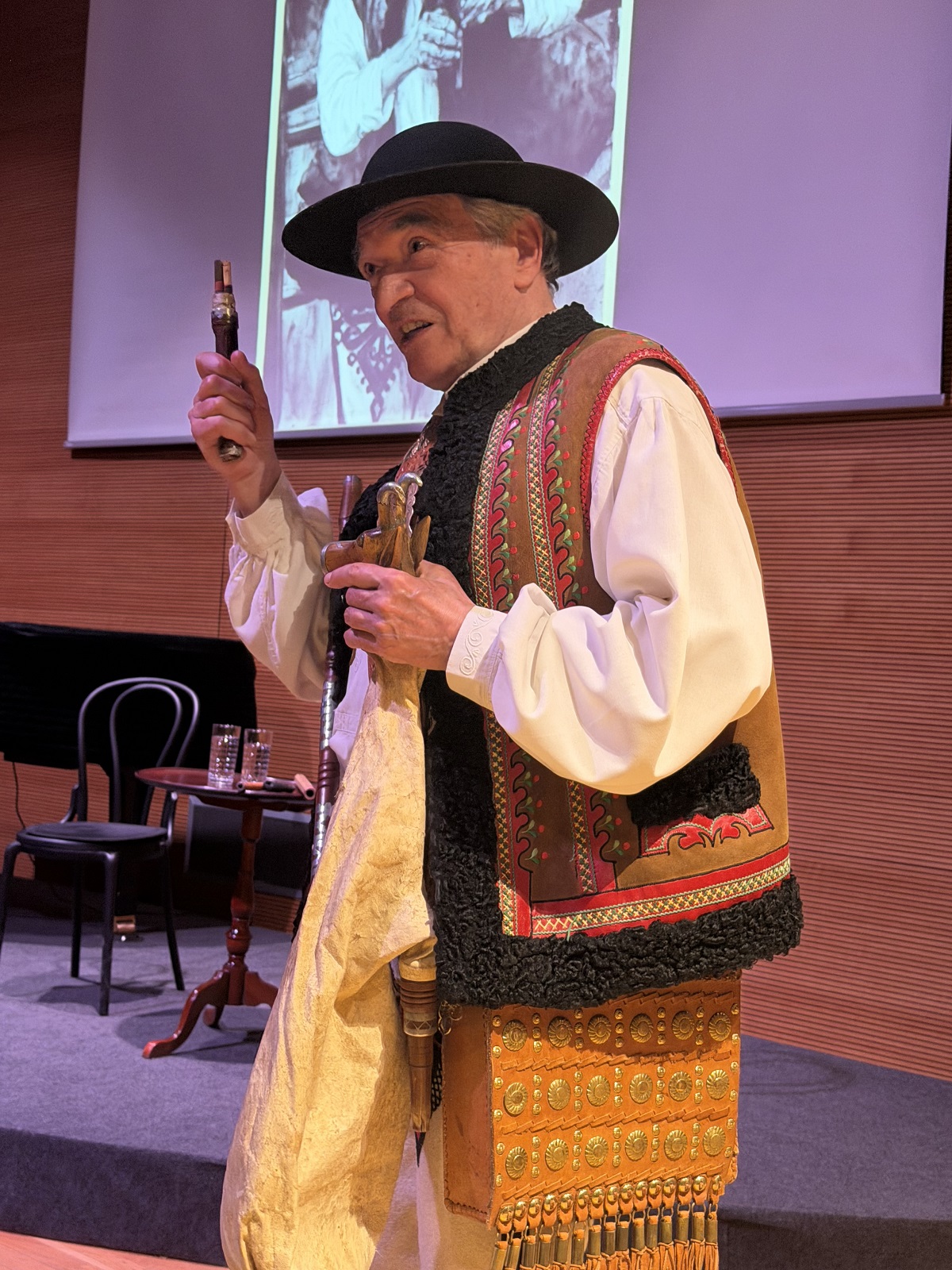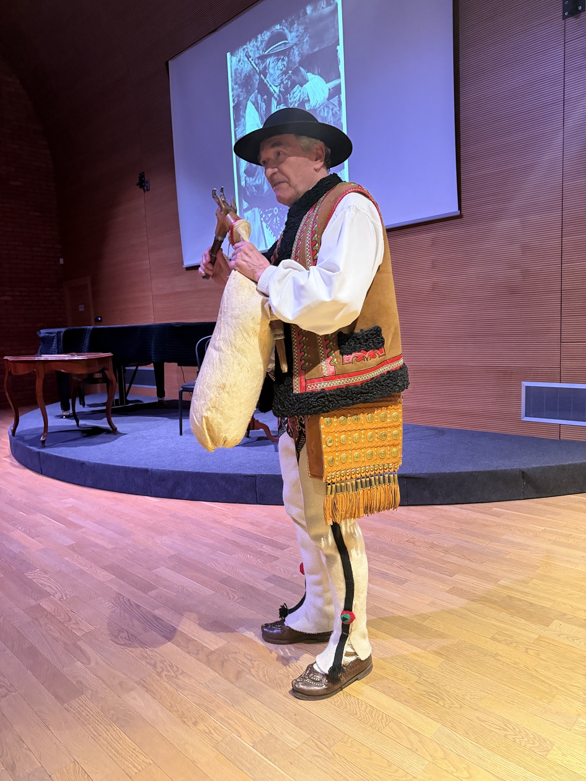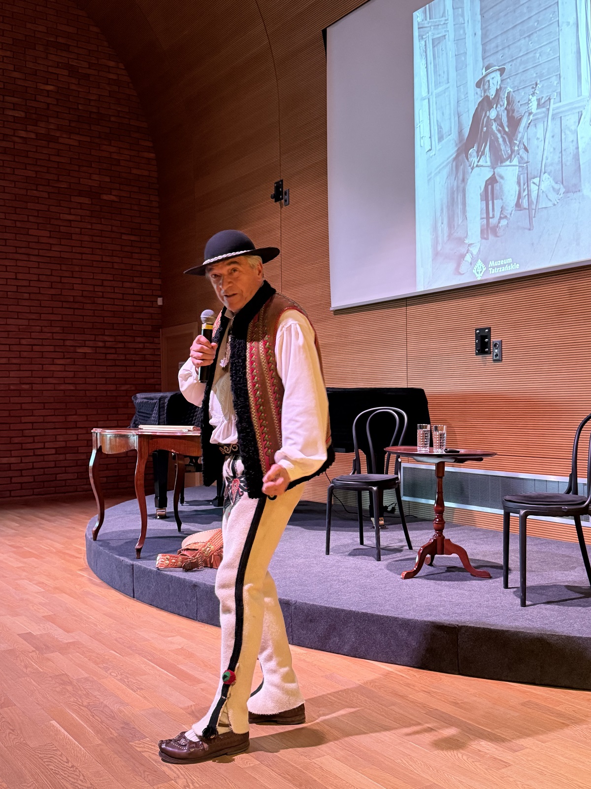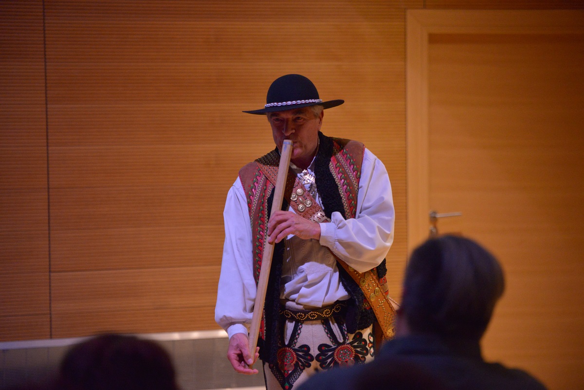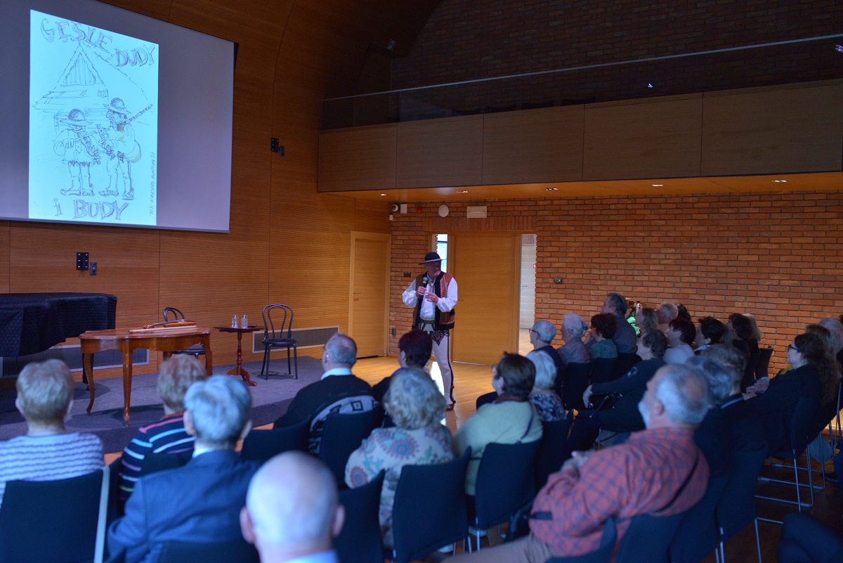 Jan Karpiel-Bułecka – muzyk, tancerz, gawędziarz, animator i popularyzator folkloru góralskiego, a także architekt i orędownik zachowania regionalnego stylu podhalańskiego – w barwny i przystępny sposób opowiadał o kulturze Podhala. Szczególne miejsce w jego opowieści zajęła postać Jana Krzeptowskiego-Sabały oraz jego niezwykły instrument – gęśle. Narracji towarzyszyła prezentacja gry na instrumencie, co spotkało się z dużym zainteresowaniem publiczności.