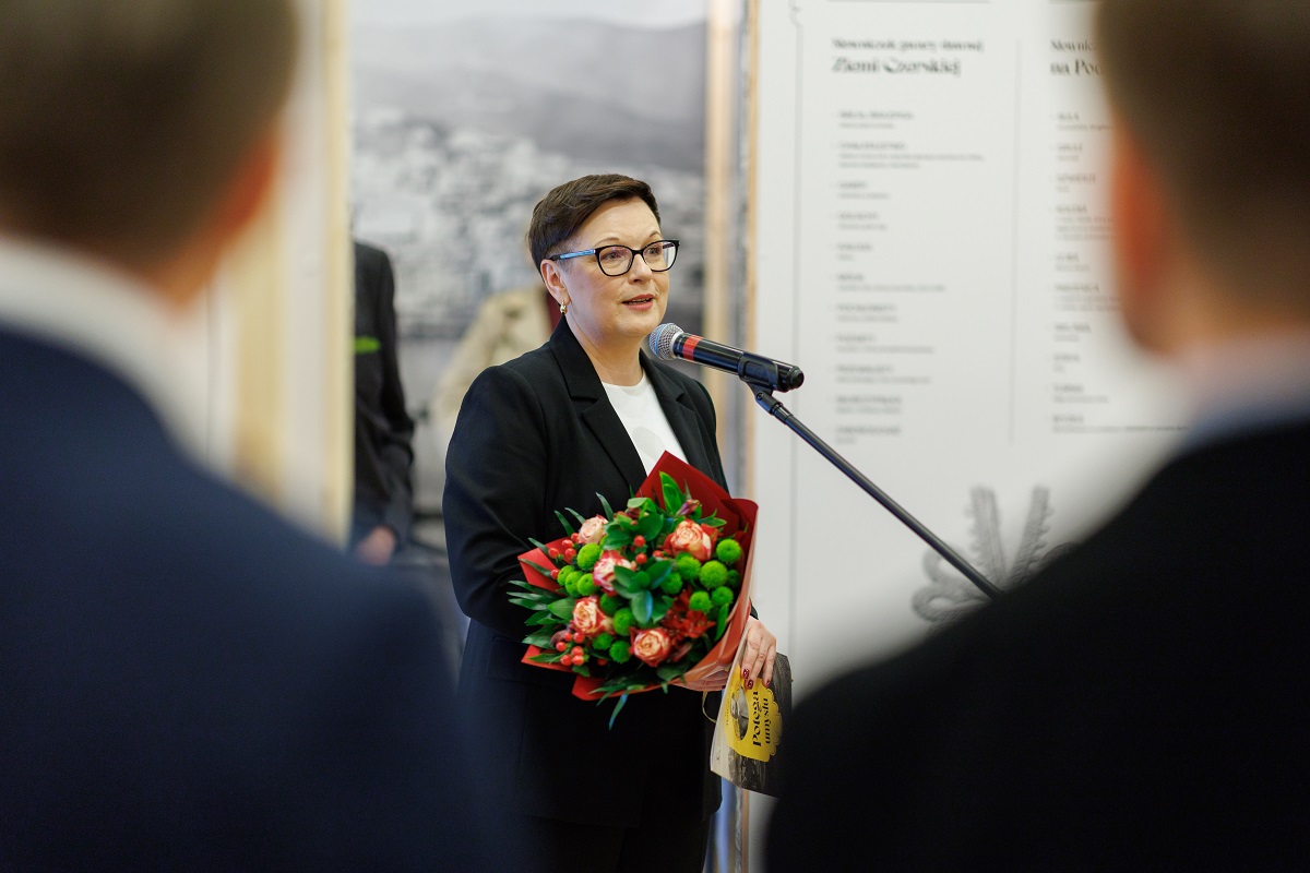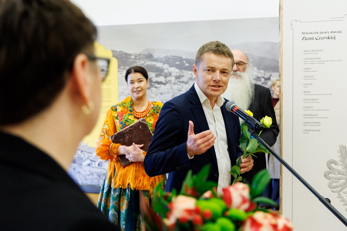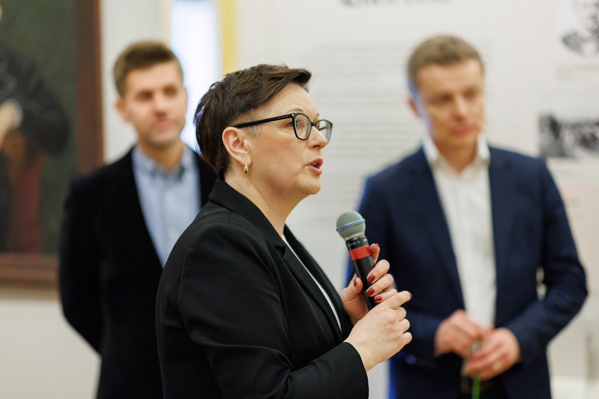 Głos zabrali również przedstawiciele samorządu powiatowego i miejskiego, wyrażając uznanie dla zespołu muzeum za zaangażowanie i wysoki poziom przygotowanej wystawy.