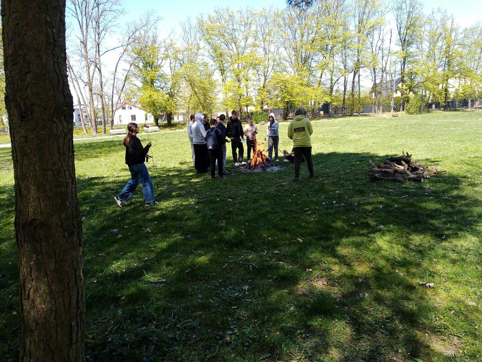 Zwieńczeniem tego pełnego aktywności dnia było wspólne ognisko na parkowej polanie – czas odpoczynku, integracji i radości z dobrze wykonanej pracy.